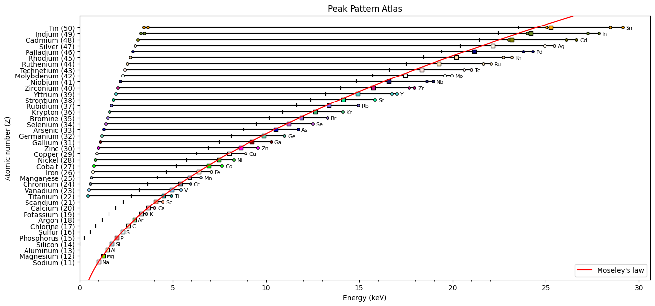 from moseley import PeriodicTable, PeakPatternAtlas, moseley_law
