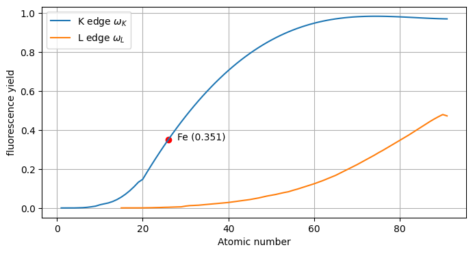 fyield_FeK = xraydb.xray_edge('Fe', 'K').fyieldimport matplotlib.pyplot as pltfig, ax = plt.subplots(figsize=[8, 4])