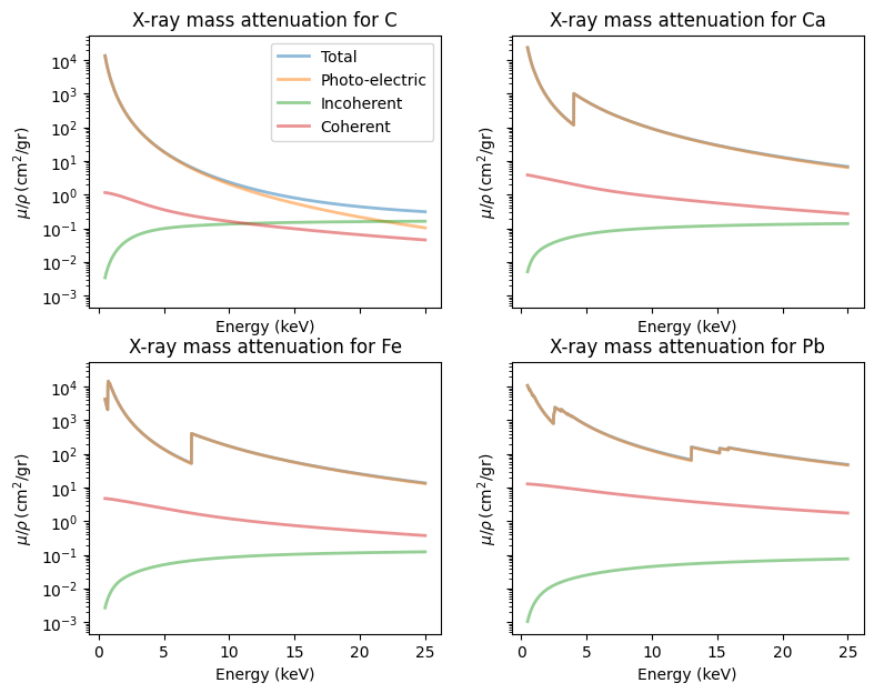 ax.set_title(f'X-ray mass attenuation for {elem}')